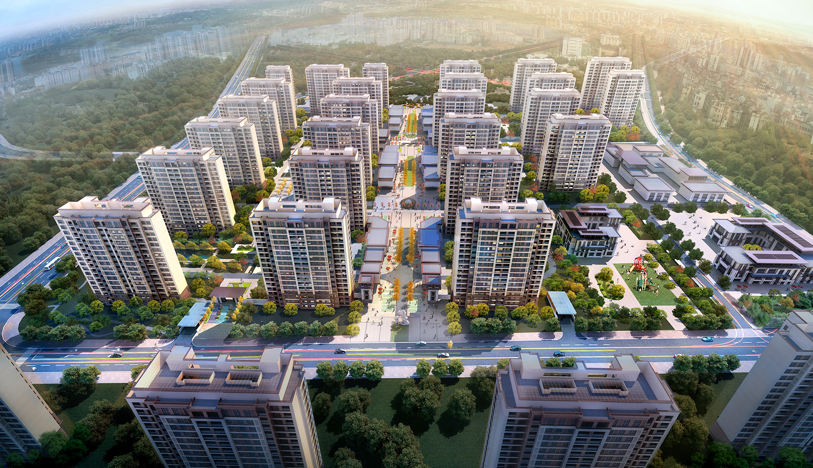 該項(xiàng)目尊重已有地塊規(guī)劃設(shè)計(jì),保留原有空間功能軸線(xiàn)、大小平嶺村安置區(qū)布局;根據(jù)周邊用地、交通情況布局配套商業(yè)、幼兒園。