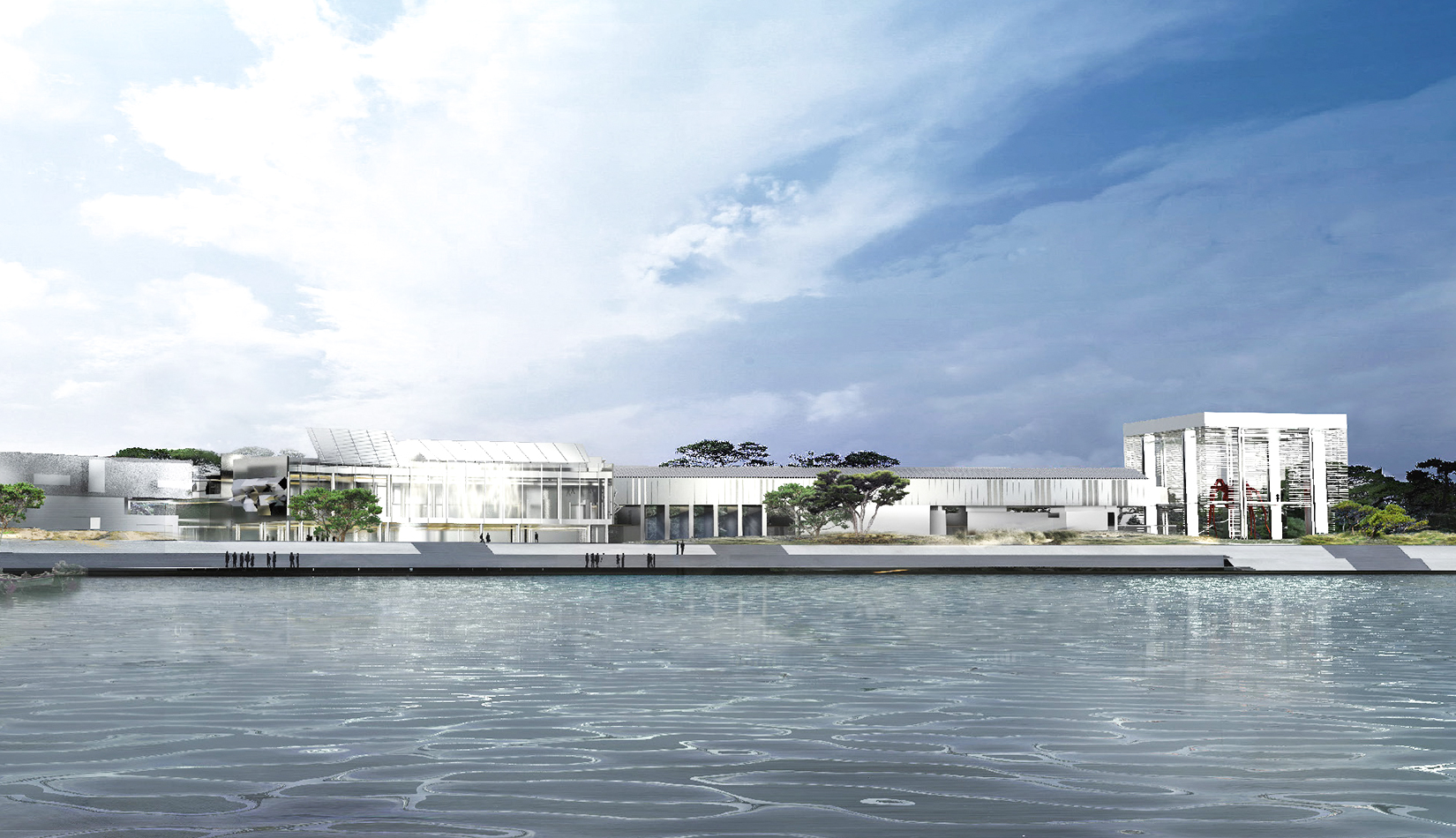 簡(jiǎn)潔典雅的設(shè)計(jì)風(fēng)格,與濱海自然環(huán)境相協(xié)調(diào),同時(shí)聘請(qǐng)世界級(jí)景觀設(shè)計(jì)大師擔(dān)綱景觀設(shè)計(jì),體現(xiàn)了以美術(shù)館為主體的、以藝術(shù)創(chuàng)作、藝術(shù)展覽和藝術(shù)教育為主題的建筑和景觀空間,為當(dāng)?shù)厥忻窈椭型庥慰吞峁┮粋€(gè)與自然、與藝術(shù)充分交流的花園,為藝術(shù)家提供一個(gè)自由的、充滿各種可能性的創(chuàng)作基地。