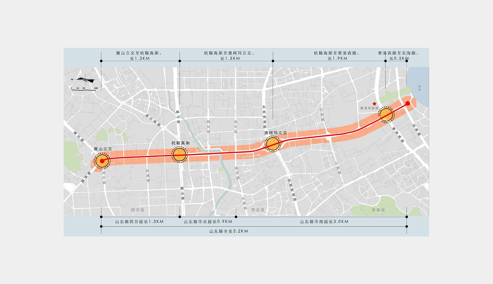 重點(diǎn)道路戶外廣告控制性導(dǎo)則規(guī)劃期限為2011—2020 年。規(guī)劃依據(jù)青島市城市總體規(guī)劃,結(jié)合城市用地現(xiàn)狀功能進(jìn)行編制,并允許伴隨地塊功能變化進(jìn)行調(diào)整,建議5 年修編一次。