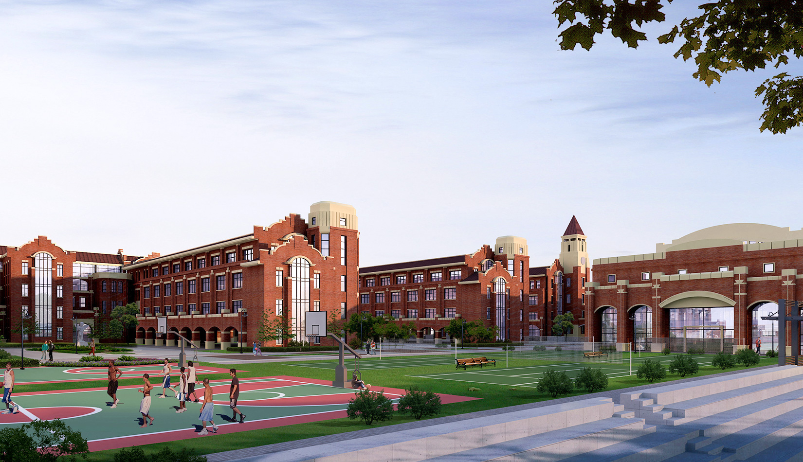 青島經(jīng)濟技術(shù)開發(fā)區(qū)實驗初級中學(xué)位于青島市經(jīng)濟技術(shù)開發(fā)區(qū)富春江路南側(cè),峨眉山路西側(cè)地塊。用地面積44579.16 ㎡ ,校建制為36個班的初級中學(xué),可容納1800 人,投資1.5 億元。學(xué)校功能包含辦公樓、普通學(xué)校及輔助教學(xué)樓、圖書閱覽室、綜合電教室、教師宿舍、食堂、體育活動室及運動場,總建筑面積23506.13 ㎡ 。學(xué)校秉承文化傳承、素質(zhì)培養(yǎng)的設(shè)計理念,建有全塑標(biāo)準(zhǔn)化400 米環(huán)形運動場、籃球場、體育館以及全區(qū)普通中小學(xué)唯一的標(biāo)準(zhǔn)游泳池;建有理化實驗室、微機教室、綜合實驗室、生物園、機器人教室和天文臺、生命科學(xué)教室等功能教室,是一所按照“全國千所示范性初中標(biāo)準(zhǔn)”要求建設(shè)的初級中學(xué)。